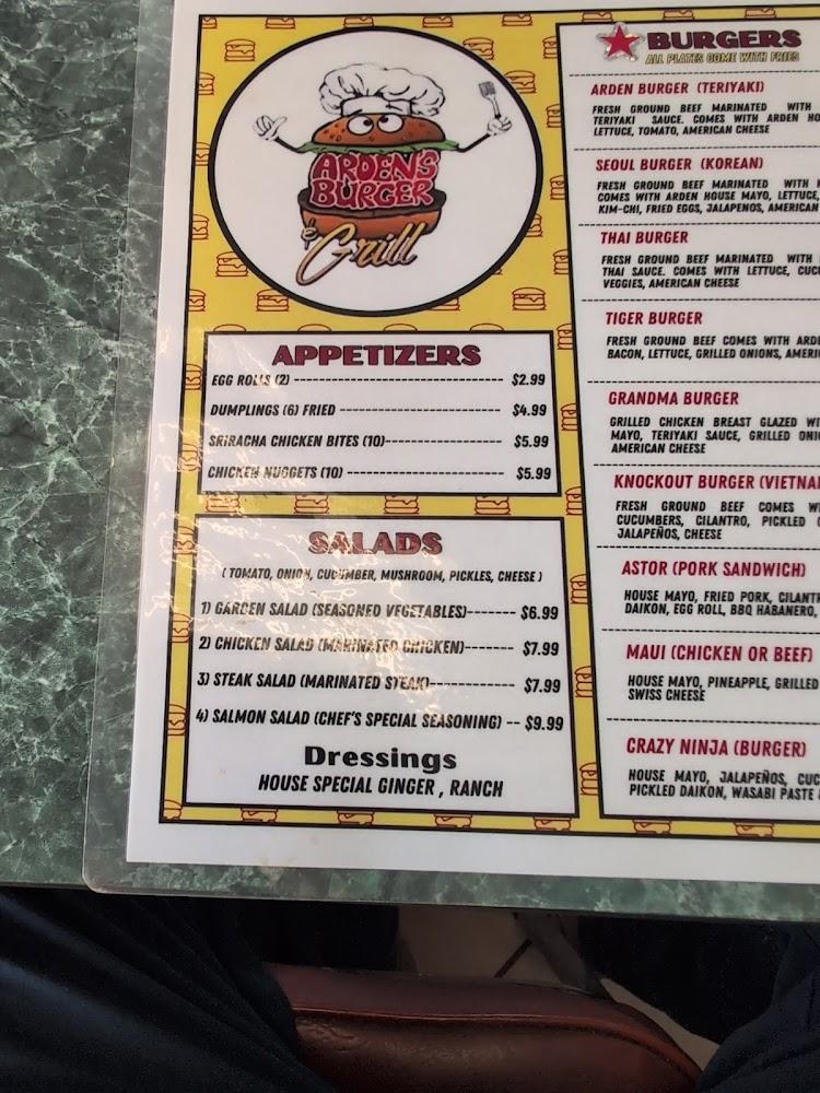 Arden's menu showcases a delightful mix of dishes inspired by both American and Asian cuisines. Signature burgers like the Arden Burger and Thai Burger stand out among the popular choices. Each burger comes with delicious fresh-cut fries, enhancing the meal experience.